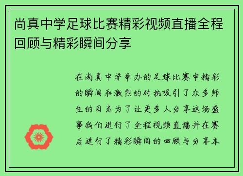香雪园足球比赛精彩视频直播全程回顾与精彩瞬间分享,旨在为读者提供一场丰富的足球盛宴。在这场比赛中,我们不仅能看到球员们在绿茵场上的激烈对抗,还能感受到团队协作的重要性。通过精彩的视频直播和细致的回顾,让我们重新领略到比赛中的每一个关键时刻,每一次进攻与防守的碰撞,以及观众们热情洋溢的欢呼声。本篇文章将从赛事概况、精彩瞬间、球员表现以及观众反响四个方面深入分析香雪园足球比赛,带您回味无穷。U...